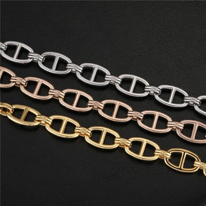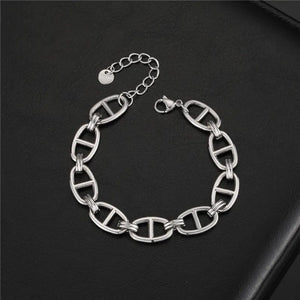 Das Breites Kaffeebohnen Armband ist ein markantes Stück, das die Essenz von Kühnheit und modernem Stil verkörpert. Entworfen für diejenigen, die gerne ein Statement setzen, verfügt dieses Armband über übergroße Kaffeebohnen-Glieder, die einen robusten und auffälligen Look bieten, der Aufmerksamkeit erregt. Seine beträchtliche Größe macht es nicht nur zu einem Accessoire, sondern zu einem zentralen Element, das jedes Outfit mit einem Hauch von Wagemut und Eleganz aufwertet.