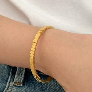 Verleihen Sie Ihrem Handgelenk mit unserem schicken und modernen Cuff Armband eine elegante Note. Dieses stilvolle Accessoire fügt jedem Outfit eine Prise Raffinesse hinzu, egal, ob Sie sich für einen besonderen Anlass schick machen oder es leger für den Alltag halten. Sein auffälliges Design bietet einen mutigen und selbstbewussten Auftritt und macht es zu einer vielseitigen Ergänzung Ihrer Schmuckkollektion.