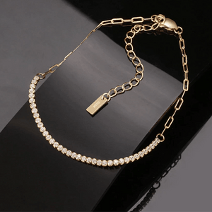 Wir präsentieren unser Dünnes Diamant Armband, ein fesselndes Stück, das Ihrem Ensemble einen Hauch von subtilem Glanz verleiht. Handgefertigt mit Präzision und Eleganz, verfügt dieses Armband über zarte Diamanten, die kunstvoll in einem schlanken Band gesetzt sind und so ein atemberaubendes Accessoire schaffen, das Raffinesse ausstrahlt. Ob allein für dezente Eleganz oder gestapelt mit anderen Armbändern für ein auffälligeres Statement, dieses dünne Armband wird sicherlich Ihren Look aufwerten.