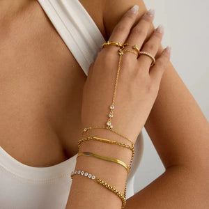 Diese Edelstein Schmuck Handkette verbindet edle Materialien mit zeitloser Schönheit. Feine Ketten treffen auf echte Edelsteine, die sanft über den Handrücken glitzern und Ihre Hand mit einem Hauch von Luxus und Natürlichkeit schmücken.