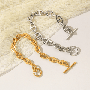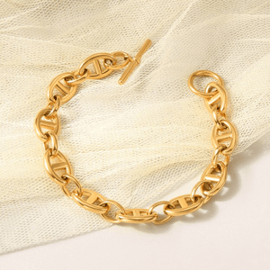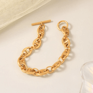 Wir präsentieren das Kaffeebohnen Armband mit T-Verschluss, ein anspruchsvolles Accessoire, das Stil und Funktionalität vereint. Sorgfältig gefertigt mit Präzision und Liebe zum Detail, präsentiert dieses Armband kunstvoll gestaltete Elemente in Form von Kaffeebohnen, betont durch einen eleganten T-förmigen Verschluss. Egal, ob Sie sich für einen besonderen Anlass kleiden oder Ihrem Alltagslook eine Note von Raffinesse verleihen möchten, das Kaffeebohnen Armband ist die perfekte Wahl.
