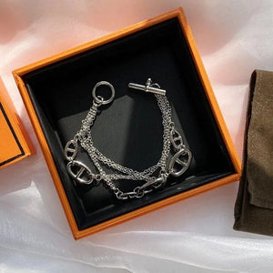 Das Kaffeebohnen Mehrkettenglieder Armband ist ein fesselndes Stück, das das beliebte Motiv der Kaffeebohnen mit der Komplexität und Eleganz mehrerer Ketten vereint. Entworfen für diejenigen, die komplexe Details und einen geschichteten Look schätzen, verfügt dieses Armband über mehrere Ketten, die jeweils mit Kaffeebohnen-Anhängern geschmückt sind und eine reiche Textur sowie eine dynamische visuelle Anziehungskraft schaffen. Es ist das perfekte Accessoire, um jedem Ensemble Tiefe und Raffinesse hinzuzufügen.