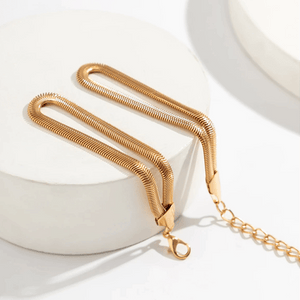 Tauchen Sie ein in die Welt der zeitlosen Eleganz mit unserem Schlangen Gliederarmband. Dieses exquisite Schmuckstück ist mehr als nur ein Accessoire; es ist ein Ausdruck von klassischer Raffinesse und modernem Luxus. Entworfen für diejenigen, die ein Auge für Eleganz und einen Geschmack für zeitlose Schönheit haben, kombiniert dieses Armband die Glätte der Schlangenkette mit der beständigen Anziehungskraft von Gold, was es zu einem unverzichtbaren Bestandteil jeder Schmucksammlung macht.