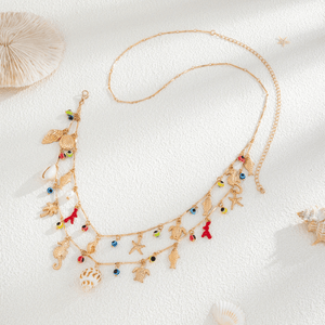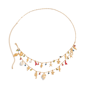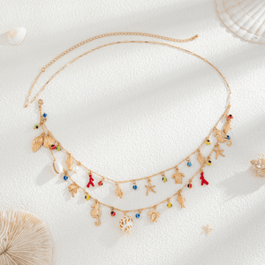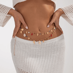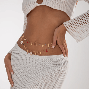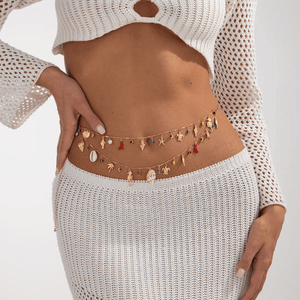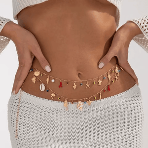 Diese Meeresbauchkette ist wie ein Sommergruß vom Meer: verziert mit bunten Anhängern, Muscheln, Seesterne, Perlen und anderen maritimen Details. Sie bringt verspielten Boho-Charme und leuchtende Farben in deinen Sommerlook. Perfekt für den Strand, Festivals oder luftige Sommer-Outfits. Die Kette ist leicht, verstellbar und setzt deine Taille stilvoll in Szene, mit jeder Bewegung ein Hauch von Meer.