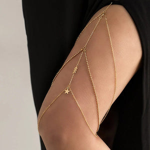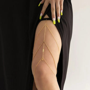 Schmücke deine Oberschenkel mit unserer exquisiten Oberschenkelkette und strahle bei jedem Schritt Selbstbewusstsein aus. Perfektioniert gefertigt, ist dieses elegante Accessoire dazu bestimmt, zu faszinieren und zu bezaubern. Umarme deine innere Göttin, während du die filigrane Schönheit dieser Kette präsentierst, ein Symbol für Stärke und Anziehungskraft. Egal, ob du die Stadt unsicher machst oder intime Momente genießt, lass unsere Oberschenkelkette dein Signature-Stück sein und deinen Stil mit ihrem unvergleichlichen Glamour aufwerten.