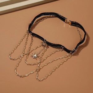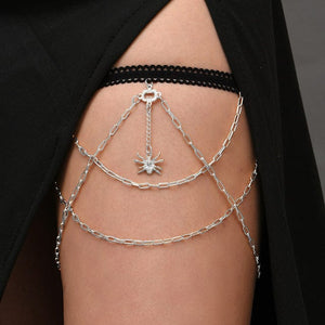 Umhüllen Sie Ihren Oberschenkel mit Intrigen mit unserer Spinnen Oberschenkelkette, einem verlockenden Accessoire, das Ihrem Ensemble eine Note von Geheimnis verleiht. Hergestellt mit filigranen Spinnenanhängern, strahlt diese Kette eine dunkle Anziehungskraft aus, perfekt für diejenigen, die das Unkonventionelle schätzen. Lassen Sie sich vom Symbolismus der Spinne fesseln, während Sie dieses faszinierende Stück tragen. Egal, ob Sie an einem gotischen Event teilnehmen oder Ihrem Look einfach eine kantige Note verleihen möchten, unsere Oberschenkelkette wird sicherlich verlocken und faszinieren.