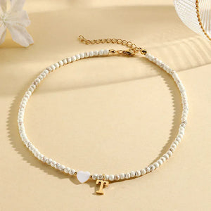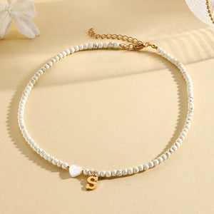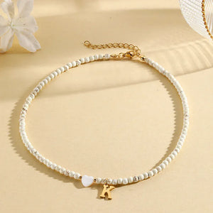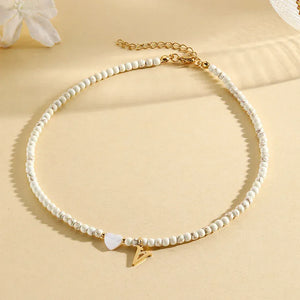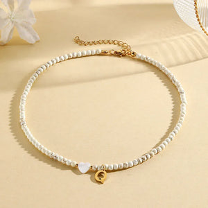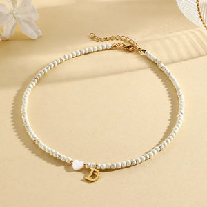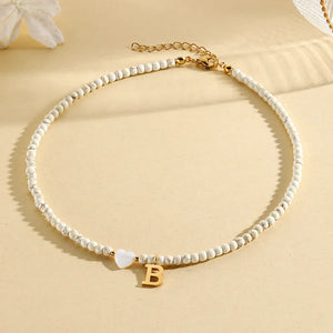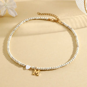 Die Perlen Halskette mit Buchstaben vereint klassischen Perlenglanz mit moderner Individualität. Die Kombination aus schimmernden Perlen und einem persönlichen Buchstabenanhänger macht dieses Schmuckstück zu einem eleganten, bedeutungsvollen Begleiter – perfekt, um eine Initiale, einen besonderen Menschen oder eine schöne Erinnerung nah am Herzen zu tragen.