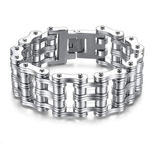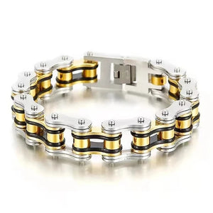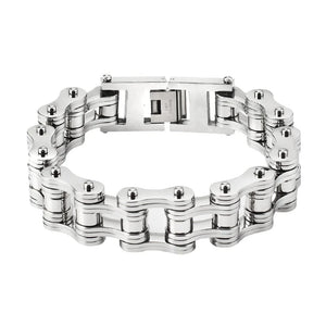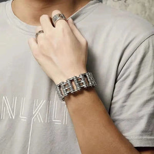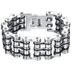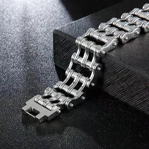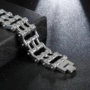 Setzen Sie ein starkes Zeichen mit diesem Armband aus Motorradkette, das echten Ketten nachempfunden ist und Handgelenke von 18 bis 24,5 cm perfekt umschließt. Mit seinem industriellen, kraftvollen Design ist es das ideale Accessoire für Biker, Schrauber oder Männer mit einem Sinn für markanten Stil.