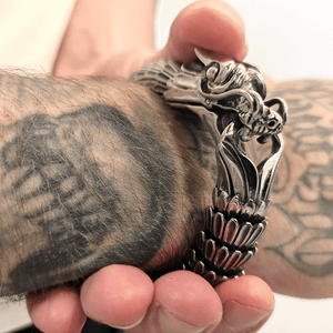 Entfesseln Sie Ihren inneren Krieger mit unserem Drachen Armband Herren. Dieses außergewöhnliche Schmuckstück besticht durch ein beeindruckendes Design, inspiriert von mythischen Drachen, die Stärke, Macht und Weisheit symbolisieren. Perfekt für Männer, die ein mutiges Statement setzen möchten, verleiht dieses Herrenarmband jedem Outfit eine legendäre Anziehungskraft. Ob für besondere Anlässe oder als einzigartiges Highlight im Alltag – dieses Armband ist der ultimative Ausdruck Ihres furchtlosen Geistes.