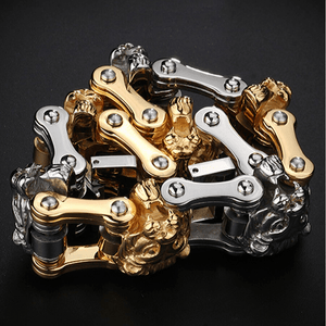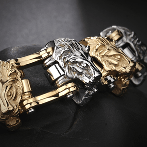 Entfesseln Sie Ihre innere Stärke mit dem Löwen Motorrad Armband. Dieses markante Accessoire kombiniert den robusten Charme von Motorradketten-Gliedern mit der majestätischen Präsenz eines Löwenemblems und macht es zu einem herausragenden Stück in jeder Sammlung. Perfekt für diejenigen, die kraftvolle, von Tieren inspirierte Mode schätzen, verleiht dieses Biker Armband jedem Outfit – ob lässig oder formell – eine kraftvolle und stilvolle Note.