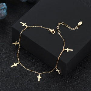 Wir präsentieren unser Fußkettchen mit Kreuz, ein wunderschön gestaltetes Accessoire, das spirituelle Symbolik mit elegantem Stil vereint. Dieses anspruchsvolle Stück verfügt über einen zarten Kreuzanhänger, der Glaube, Hoffnung und Hingabe repräsentiert. Perfekt für diejenigen, die ihre spirituellen Überzeugungen ausdrücken möchten, während sie ein Gefühl für Mode bewahren, ist dieses Fußkettchen eine subtile, aber kraftvolle Erinnerung an Glauben und Anmut.