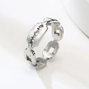 Das markante Rasierklingen-Design verleiht diesem Ring eine moderne, rebellische Note, die jedes Outfit aufwertet – edel, mutig und einzigartig.