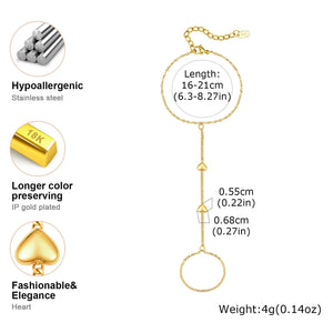 Die Gold Herz Handkette ist ein zartes Schmuckstück, das Handgelenk und Finger elegant verbindet. Mit ihrem glänzenden Herzanhänger in Gold verleiht sie jedem Look eine romantische, verspielte Note, ideal für Hochzeiten, Partys, Dates oder als stilvolles Alltagsaccessoire.