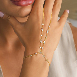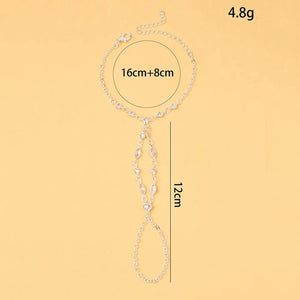 Das Zirkon-Handarmband ist ein edles Schmuckstück, das Finger und Handgelenk mit einer feinen Kette verbindet, verziert mit glänzenden Zirkonsteinen. Sein funkelnder Glanz macht es zum perfekten Accessoire für Hochzeiten, elegante Abende oder besondere Anlässe.
