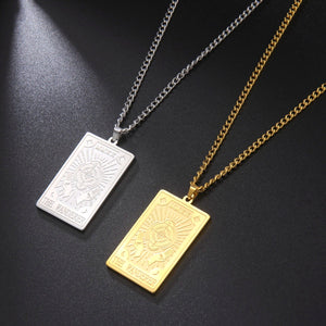 Entdecken Sie die Anziehungskraft des Mystischen mit unserer Tarot Herren Goldkette. Dieses fesselnde Schmuckstück verfügt über einen fein detaillierten Tarotkarten-Anhänger, der verschiedene Aspekte des Lebens, des Schicksals und der Intuition symbolisiert. Perfekt für sowohl lässige als auch formelle Outfits, verleiht diese Kette jedem Look eine Note rätselhafter Raffinesse. Egal, ob Sie ein Fan von Tarot sind oder seine reiche Symbolik schätzen, diese Kette ist eine einzigartige Möglichkeit, Ihre spirituelle Seite auszudrücken.