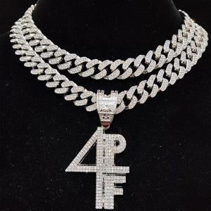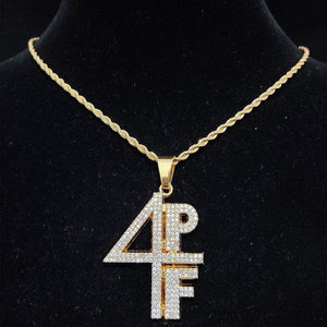 Zeigen Sie Ihren einzigartigen Stil mit unserer 4PF Halskette, einem auffälligen Accessoire, das die Essenz der Hip-Hop-Kultur verkörpert. Mit einem markanten "4PF"-Anhänger ist diese Halskette perfekt für diejenigen, die auffallen und ein kraftvolles Statement setzen möchten. Das elegante Design und die moderne Ästhetik machen sie zu einem vielseitigen Stück, das jedes Outfit ergänzt, egal ob Sie auf der Bühne stehen, an einer hochkarätigen Veranstaltung teilnehmen oder einfach Ihre Individualität ausdrücken möchten. Die 4PF Kette zieht garantiert alle Blicke auf sich und sorgt für Gesprächsstoff.