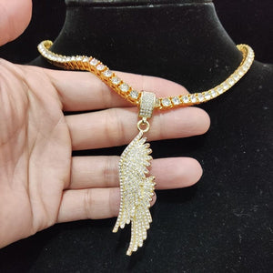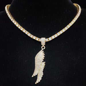 Tauchen Sie ein in die Welt der Hip-Hop-Kultur mit unserer atemberaubenden Angel Wing Kette. Mit großer Sorgfalt gefertigt, zeigt diese Kette ein Paar kunstvoll gestalteter Flügel, die Freiheit, Macht und Transformation symbolisieren. Das gewagte Design ist das perfekte Accessoire für alle, die ein Statement setzen und aus der Masse hervorstechen möchten. Mit hochwertigen Materialien und exquisiter Handwerkskunst überzeugt diese Kette nicht nur durch ihr Aussehen, sondern auch durch ihre Langlebigkeit. Erhöhen Sie Ihr Modebewusstsein und lassen Sie Ihre innere Ikone mit diesem unverzichtbaren Stück erstrahlen.