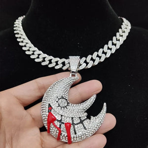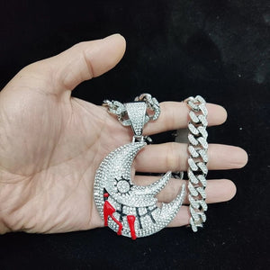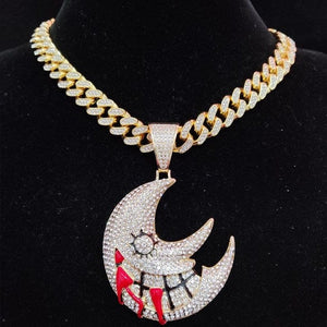 Erhöhen Sie Ihren Stil mit unserer Hip Hop Mond Halskette, einem einzigartigen Schmuckstück, das markantes Design mit mystischer Anziehungskraft vereint. Diese auffällige Halskette verfügt über einen sorgfältig gestalteten Mondanhänger, der mit funkelnden Steinen besetzt ist und ein herausragendes Accessoire für jedes Outfit darstellt. Egal, ob Sie auf der Bühne stehen, eine Party besuchen oder Ihrem Alltagslook einen Hauch von Luxus verleihen möchten – diese Kette zieht garantiert alle Blicke auf sich und unterstreicht Ihren einzigartigen Stil.