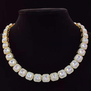 Steigern Sie Ihr Bling-Spiel mit unserer Iced Out Halskette, die entworfen wurde, um Sie ins Rampenlicht zu rücken. Überzogen mit hochqualitativen, präzise geschliffenen Zirkonia-Steinen, fängt diese Halskette das Licht wunderschön ein und erzeugt einen atemberaubenden Effekt, der unmöglich zu ignorieren ist. Jeder Stein ist sorgfältig eingesetzt, um maximalen Glanz und Haltbarkeit zu gewährleisten. Ob auf einer Party, einem Konzert oder einfach nur in der Stadt, diese Halskette garantiert, dass Sie heller strahlen als alle anderen.