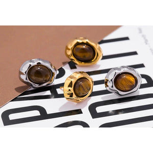 Diese Steinohrringe vereinen zeitlose Eleganz mit der ursprünglichen Kraft der Natur. Jeder Stein ist ein Unikat, sorgfältig ausgewählt und kunstvoll verarbeitet, um seine natürliche Maserung und seinen einzigartigen Glanz zu bewahren.