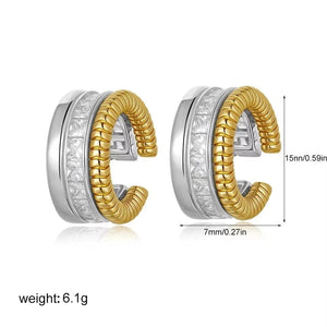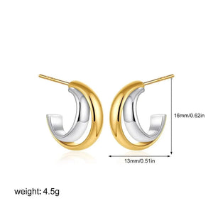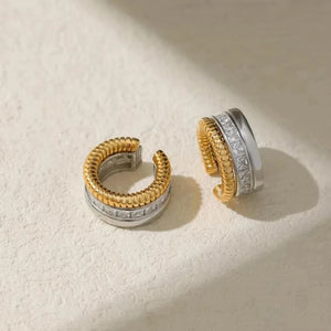 Diese Zweifarbige Ohrringe vereinen zeitlose Eleganz mit einem modernen, ausdrucksstarken Design. Die Kombination aus warmem Goldton und kühlem Silberglanz schafft einen faszinierenden Kontrast, der sowohl edel als auch vielseitig wirkt.