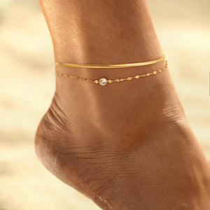 Entdecken Sie unser Doppeltes Fusskettchen, ein Schmuckstück, das dazu entworfen wurde, Ihren Knöchel elegant zu schmücken. Hergestellt aus hochwertigen Materialien, ist dieses Fußkettchen das perfekte Accessoire für jedes Outfit, sei es leger oder formell. Das doppelte Kettendesign verleiht eine einzigartige Note von Raffinesse, die Ihnen erlaubt, sich dezent abzuheben. Jeder Schritt wird von einem sanften Schimmer begleitet, der alle Blicke auf sich zieht.