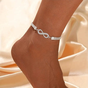 Führen Sie ein ewiges Symbol der Kontinuität und unendlichen Liebe mit unserem Fußkettchen Infinity Silber ein. Dieses elegante Accessoire verfügt über eine zarte Silberkette, die mit dem ikonischen Unendlichkeitszeichen geschmückt ist, welches unzerbrechliche Bindungen und ewige Schönheit repräsentiert. Perfekt für diejenigen, die tiefe Verbindungen schätzen oder ein Symbol der Unendlichkeit mit sich tragen möchten, ist dieses Silber-Fußkettchen ein vielseitiges Stück für den täglichen Gebrauch oder besondere Anlässe und fügt jedem Outfit einen Hauch von zeitloser Anmut hinzu.