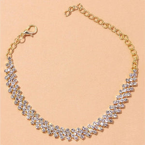 Verleihen Sie Ihrem Look einen Hauch von Glamour mit unserem Fußkettchen Strass, einem blendenden Accessoire, das entworfen wurde, um Blicke auf sich zu ziehen und Ihre Schritte zu erleuchten. Dieses mit schimmernden Strasssteinen verzierte Fußkettchen ist perfekt für diejenigen, die ihrem Ensemble einen Funken Glanz hinzufügen möchten, sei es für einen besonderen Anlass oder um den Alltag aufzuhellen. Ideal, um sowohl lässige als auch elegante Outfits zu ergänzen, ist unser Strass-Fußkettchen ein Fest der schicken Stil und Raffinesse.