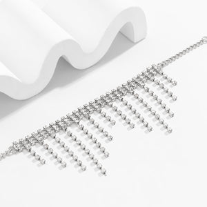 Tauchen Sie ein in die Welt des Glanzes mit unserer Fußkette Silber Strass, einem Accessoire, das entworfen wurde, um Licht einzufangen und Blicke auf sich zu ziehen. Diese Fußkette zeichnet sich durch eine Reihe sorgfältig ausgewählter Strasssteine aus, die bei jeder Bewegung glitzern, und ist somit die perfekte Ergänzung für diejenigen, die gerne im Mittelpunkt stehen. Ob Sie zu einer Strandparty gehen, ein formelles Event besuchen oder einfach Ihrem Alltagslook einen Hauch von Glamour verleihen möchten, diese silberne Strass-Fußkette ist ein Zeugnis für anspruchsvollen Stil und blendende Schönheit.