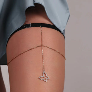 Betone Deine Anziehungskraft mit unserer Schmetterling Beinkette, einem faszinierenden Schmuckstück, das die Weiblichkeit mit Anmut feiert. Gefertigt mit zarten Schmetterlingsmotiven, schmückt diese Kette elegant Deinen Oberschenkel und verleiht Deinem Ensemble eine verspielte und bezaubernde Note. Egal, ob Du an einer Gartenparty oder einem romantischen Date teilnimmst, lass die Schmetterlinge um Deinen Oberschenkel grazile flattern und strahle dabei Eleganz und Charme aus.