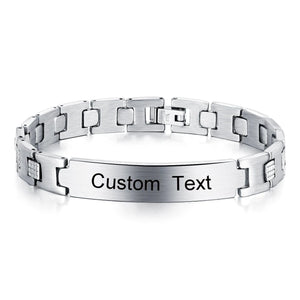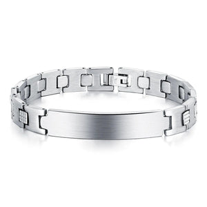 Sein elegantes, maskulines Design verbindet Kraft und Raffinesse, ob als Panzerkette, Gliederarmband oder Gravurarmband.