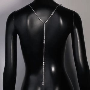 Diese Rücken Halskette ist das perfekte Schmuckstück für alle, die eine raffinierte und feminine Note in ihr Outfit integrieren möchten. Die filigrane Kette verläuft sanft entlang des Rückens und sorgt mit schimmernden Perlen oder funkelnden Kristallen für einen eleganten Blickfang. Ideal für rückenfreie Kleider, Hochzeiten oder glamouröse Anlässe – dieses Accessoire hebt Ihre Silhouette stilvoll hervor.