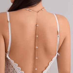 Diese Ruckenkette mit Perlen verleiht jedem Outfit eine edle Note und ist das perfekte Accessoire für elegante Anlässe. Die filigrane Kette schmiegt sich sanft an den Rücken und setzt mit ihren schimmernden Perlen stilvolle Akzente. Ob für eine Hochzeit, einen festlichen Abend oder ein romantisches Dinner – diese Kette sorgt für einen atemberaubenden Auftritt.