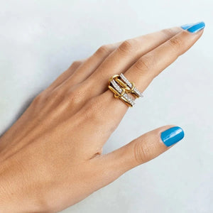 Die 4 verschlungenen Ringe beeindrucken durch ihr kunstvolles Design, bei dem vier Bänder harmonisch ineinander verflochten sind. Dieses Schmuckstück steht für Einheit, Ausgeglichenheit, Stärke und Ewigkeit – und vereint tiefere Symbolik mit zeitloser Eleganz.