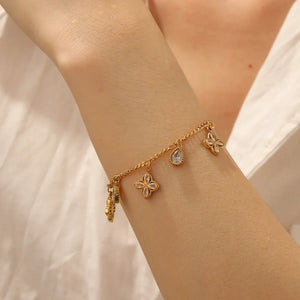 Das Anhänger Armband Kleeblatt vereint zarte Schönheit mit einer starken symbolischen Bedeutung. Das filigrane Kleeblatt steht traditionell für Glück, Liebe und positive Energie – und macht dieses Armband zu einem bezaubernden Begleiter für jeden Tag. Ein stilvolles Accessoire für alle, die feinen, bedeutungsvollen Schmuck schätzen.
