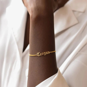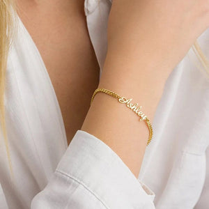 Entdecken Sie unser Armband Kette mit Namen, ein atemberaubendes Stück personalisierter Schmuck, das es Ihnen ermöglicht, Ihre Identität mit Stil zu tragen. Gefertigt mit exquisiter Liebe zum Detail, verfügt dieses Armband über eine zarte Kette, die mit einem anpassbaren Namensschild verziert ist und somit zu einem wirklich einzigartigen und bedeutungsvollen Accessoire wird. Ob es Ihr eigener Name ist oder der eines geliebten Menschen, dieses Armband ist eine wunderschöne Möglichkeit, Individualität zu feiern.