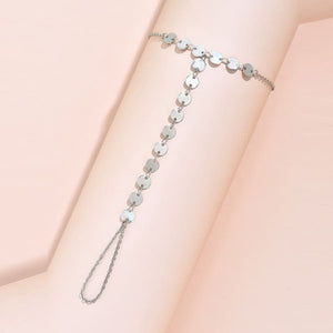 Wir präsentieren unser Armband mit Ring Verbunden, ein atemberaubendes Stück, das Stil und Raffinesse nahtlos vereint. Dieses exquisite Accessoire verfügt über ein zartes Armband, das mit einem verbundenen Ring geschmückt ist und so eine fesselnde und einzigartige Verzierung für Ihr Handgelenk schafft. Gefertigt mit akribischer Liebe zum Detail, hebt dieses Armband mit Ring Ihr Ensemble mit seiner zeitlosen Anziehungskraft und unbestreitbaren Eleganz hervor.