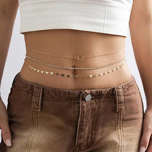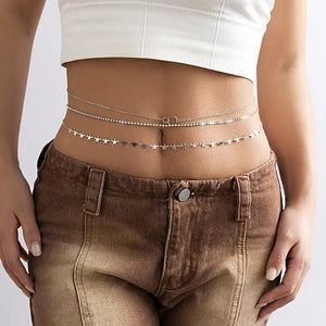 Setzen Sie ein Statement mit unserem Bauchketten Schmuck. Sein vielseitiges Design ermöglicht es Ihnen, ihn mit verschiedenen Outfits zu kombinieren, von lässig bis elegant. Tragen Sie ihn selbstbewusst, um Ihrem Look einen Hauch von Glamour zu verleihen. Dieser Bauchschmuck ist perfekt für diejenigen, die nach einem stilvollen und vielseitigen Accessoire suchen.