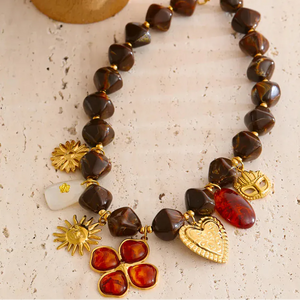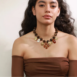Verleihen Sie Ihrem Look eine stilvolle, erdige Note mit einer Braunen Charm Halskette, die Wärme, Ruhe und Modernität vereint. Der sanfte Braunton harmoniert perfekt mit neutralen und natürlichen Farben und macht diese Halskette zu einem wunderschönen Accessoire für jeden Tag. Dezent, aber dennoch wirkungsvoll – genau das richtige Schmuckstück für Frauen, die Eleganz auf subtile Weise ausdrücken möchten.