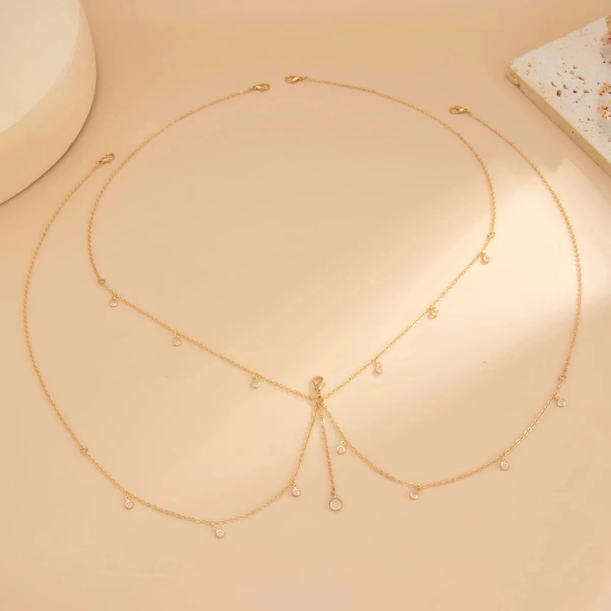 Die Brüste-Kette ist ein auffälliges Accessoire, das Weiblichkeit und Selbstbewusstsein auf stilvolle Weise betont. Fein gearbeitete Glieder oder filigrane Ketten schmiegen sich an die Brust und unterstreichen das Dekolleté mit einem Hauch von Sinnlichkeit und Glamour. Perfekt, um jedem Outfit eine unverwechselbare, modische Note zu verleihen.