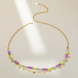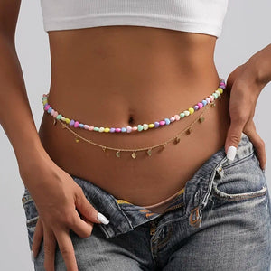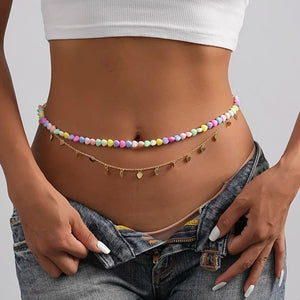 Bringen Sie Freude und Lebendigkeit in Ihren Stil mit unserer Bunte Bauchkette. Entworfen, um zu faszinieren und Ihr Outfit aufzuhellen, bietet diese Bauchkette eine Explosion von Farben und Verspieltheit. Egal, ob Sie sie für einen sonnigen Tag am Strand oder einen lebhaften Abend mit Freunden tragen, dieses lebhafte Stück wird Aufmerksamkeit erregen und Ihre einzigartige Persönlichkeit zum Strahlen bringen. Wagen Sie es, sich abzuheben, und drücken Sie Ihre Individualität mit dieser Bauchkette aus, die Vielfalt und Kreativität zelebriert.