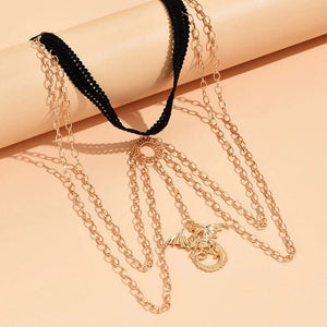 Begib dich auf eine Reise der mythischen Anziehungskraft mit unserer Drachen Beinkette, einem faszinierenden Accessoire, das den Geist des Abenteuers entfacht. Gestaltet mit kunstvollen Drachenmotiven strahlt diese Beinkette eine Aura von Mystik und Macht aus. Lass die majestätische Präsenz des Drachen deine innere Stärke und deinen Mut symbolisieren, während du dieses fesselnde Stück trägst. Ob du alte Ruinen erkundest oder an einem Fantasy-Event teilnimmst, unsere Oberschenkelkette ist der perfekte Weg, um dein inneres Feuer zu kanalisieren und deinen wilden Geist zu umarmen.