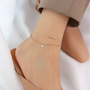 Entdecken Sie die verfeinerte Schönheit unseres Fußkettchen Doppelt, ein anspruchsvolles Accessoire, das Ihrem Look eine geschichtete Note von Eleganz verleiht. Dieses Fußkettchen zeichnet sich durch zwei zarte Ketten aus, die das Fußgelenk anmutig umschließen und bieten eine schicke und moderne Interpretation klassischen Fußschmucks. Perfekt, um Ihren Sommerteint zu betonen, Ihre Lieblingsschuhe zu ergänzen oder ein stilvolles Detail zu Ihrem Abendoutfit hinzuzufügen, ist dieses doppelte Fußkettchen vielseitig genug für jeden Anlass.