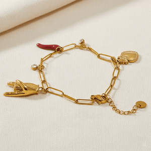 Verleihen Sie Ihrem Look eine luxuriöse Note mit einem Goldarmband mit Anhänger, das zeitlose Eleganz mit persönlichem Ausdruck verbindet. Der warme Goldglanz wertet jedes Outfit auf – ob im Alltag, im Büro oder bei besonderen Anlässen – und macht dieses Armband zu einem stilvollen Highlight an Ihrem Handgelenk.