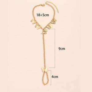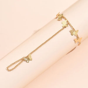 Wir präsentieren unsere Handkette Schmetterling, eine bezaubernde Kombination aus verspielter Eleganz und akribischer Handwerkskunst. Dieses fesselnde Stück zeichnet sich durch zarte Schmetterlingsmotive aus, die exquisit im Detail gestaltet sind, um einen Hauch von der Schönheit der Natur an Ihr Handgelenk zu bringen. Mit Präzision gefertigt, verkörpert diese Handkette die Freiheit und Grazie der Schmetterlinge und ist eine atemberaubende Ergänzung für jedes Outfit.