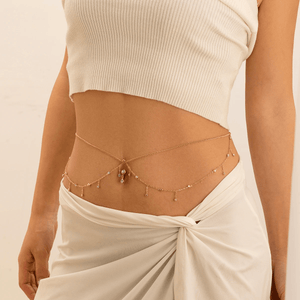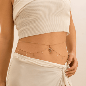 Diese stilvolle Hüftkette mit Bauchnabelpiercing wurde speziell für gepiercte Bauchnäbel entworfen. Der mittige Anhänger wird direkt an deinem Piercing befestigt und verleiht deinem Look einen sexy, femininen Touch. In Gold oder Silber erhältlich, ideal für den Sommer.