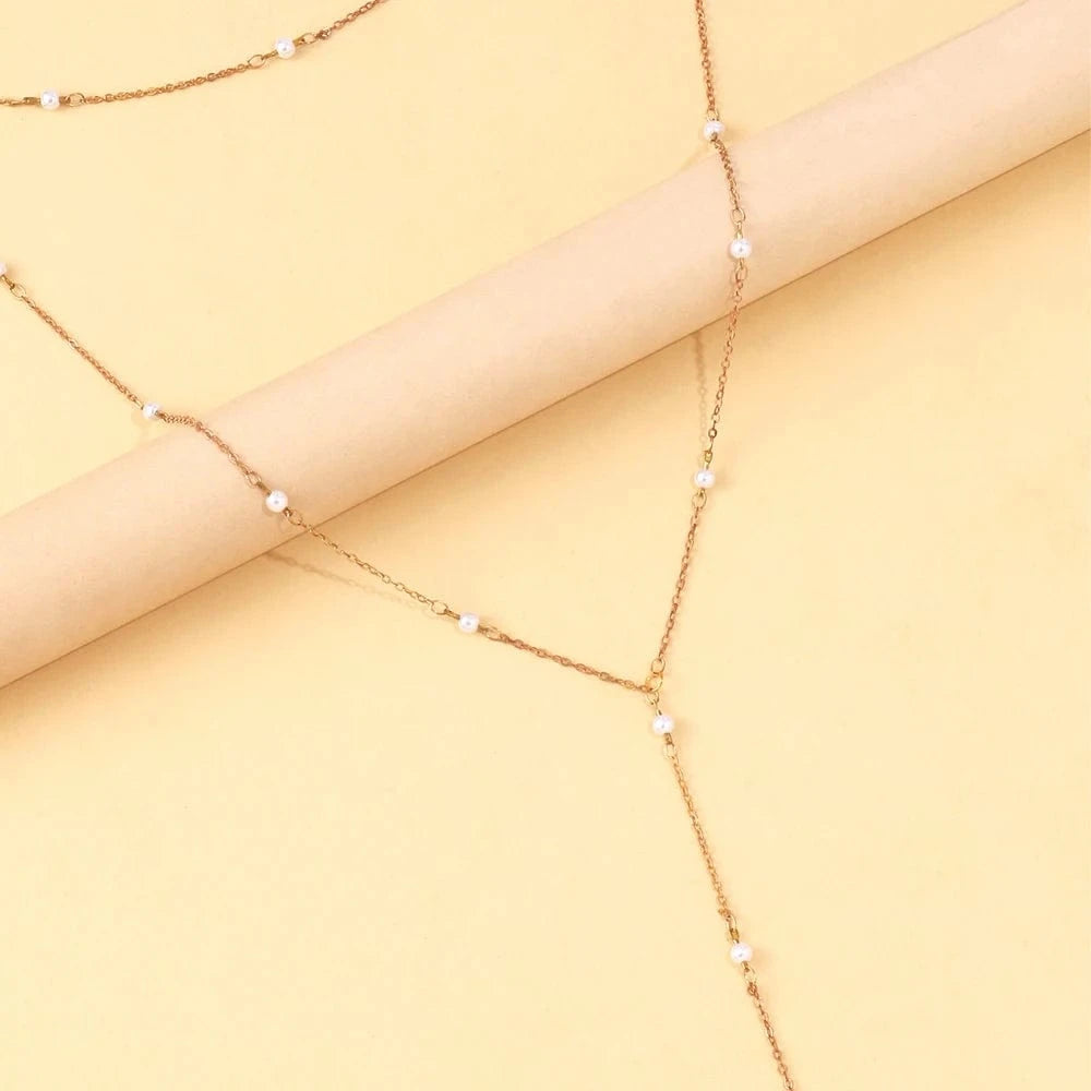 Das Juwel mit Perlenrückseite ist das perfekte Accessoire, um ein rückenfreies Kleid mit zarter Raffinesse zu ergänzen. Die edlen Perlen, die sanft entlang des Rückens fallen, verleihen Ihrem Outfit einen luxuriösen, femininen Touch. Ideal für Hochzeiten, elegante Abende oder besondere Anlässe, sorgt es für einen unvergesslichen Auftritt.