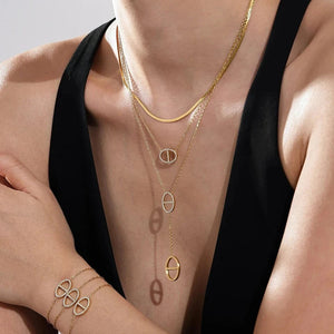 Die Kaffeebohnenkette aus Edelstahl überzeugt mit ihrem ikonischen Kaffeebohnen-Muster, das Stärke und Raffinesse vereint. Mit ihrem glänzenden Finish und der charakteristischen Struktur ist sie das perfekte Schmuckstück für den Alltag, Partys oder elegante Anlässe.