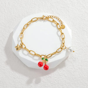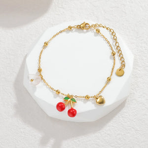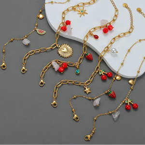 Bringen Sie gute Laune in Ihren Look mit einer Kirsch Charm Kette, einem frischen und verspielten Schmuckstück, das sofort an Sommer, Leichtigkeit und Freude erinnert. Die detailreichen Kirschanhänger verleihen Ihrem Outfit einen niedlichen, modernen Akzent – perfekt für Frauen, die farbenfrohen, charakterstarken Schmuck lieben.