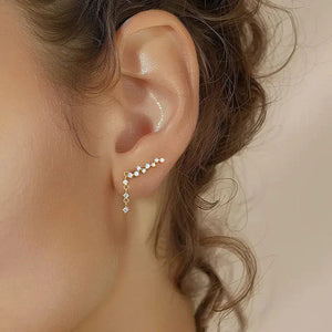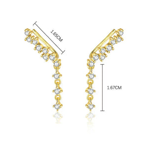 Die Kletter Ohrringe Gold verleihen Ihrem Look eine warme, luxuriöse Ausstrahlung. Mit ihrer aufsteigenden, ohrumschmeichelnden Form kreieren sie einen schlanken, modernen und sofort auffälligen Effekt, der Ihr Gesicht elegant hervorhebt. Der goldene Schimmer wirkt sowohl im Alltag stilvoll als auch zu besonderen Anlässen glamourös, perfekt für Frauen, die edlen, femininen Schmuck lieben, der zugleich subtil und ausdrucksstark ist.